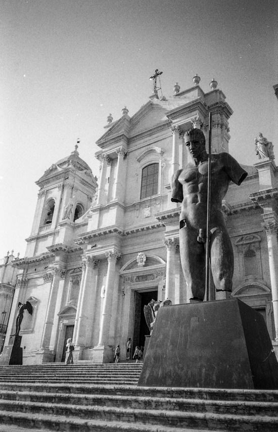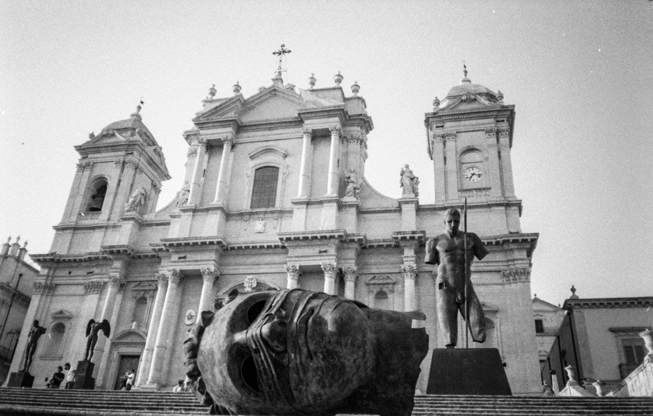 Ho già avuto modo di parlare della cittadina di Noto (SR) quale vero e proprio museo a cielo aperto (v. articolo Noto (SR): la capitale del Barocco). Nella mia visita della scorsa estate, ho avuto modo di apprezzare delle opere gigantesche – alcune arrivano a superare i 6 metri – posizionate sulla scalinata della Cattedrale.