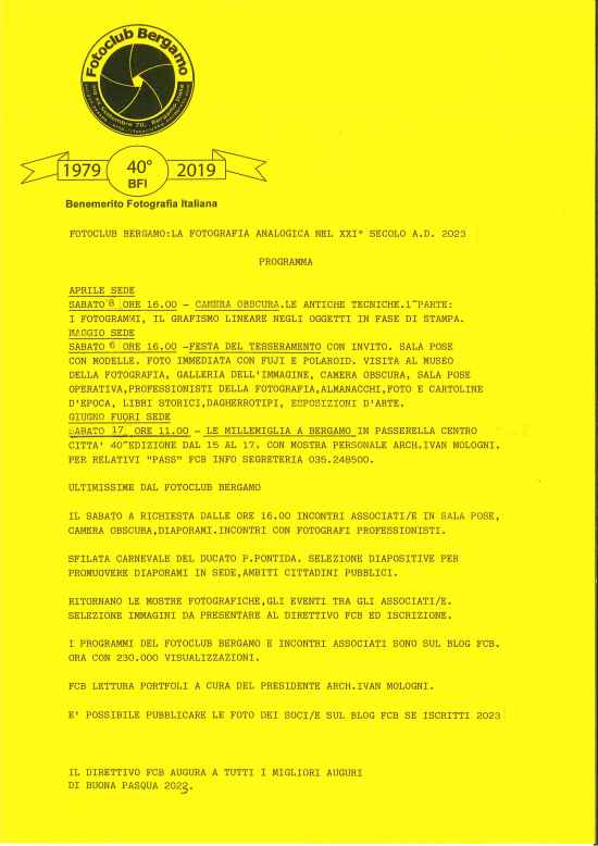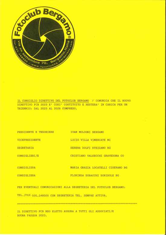 Comunicazione del Consiglio Direttivo Fotoclub Bergamo