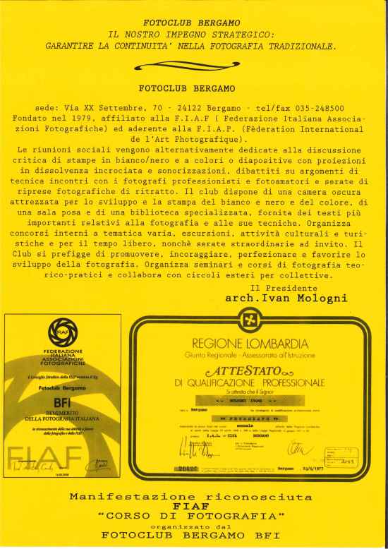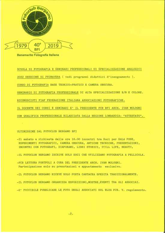 Corsi seminari di fotografia & Nomina Consiglio Direttivo Fotoclub Bergamo BFI