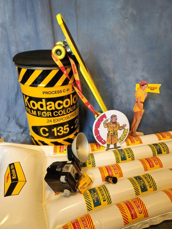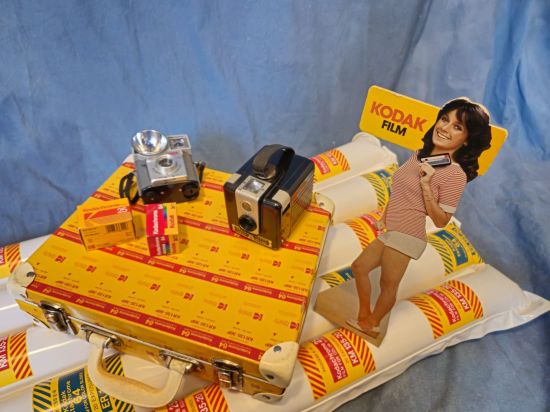Al Museo è da ammirare il Diorama Kodak con contenitore Kodacolor, materassino, valigetta vintage, Ciripiripì Kodak con modella.