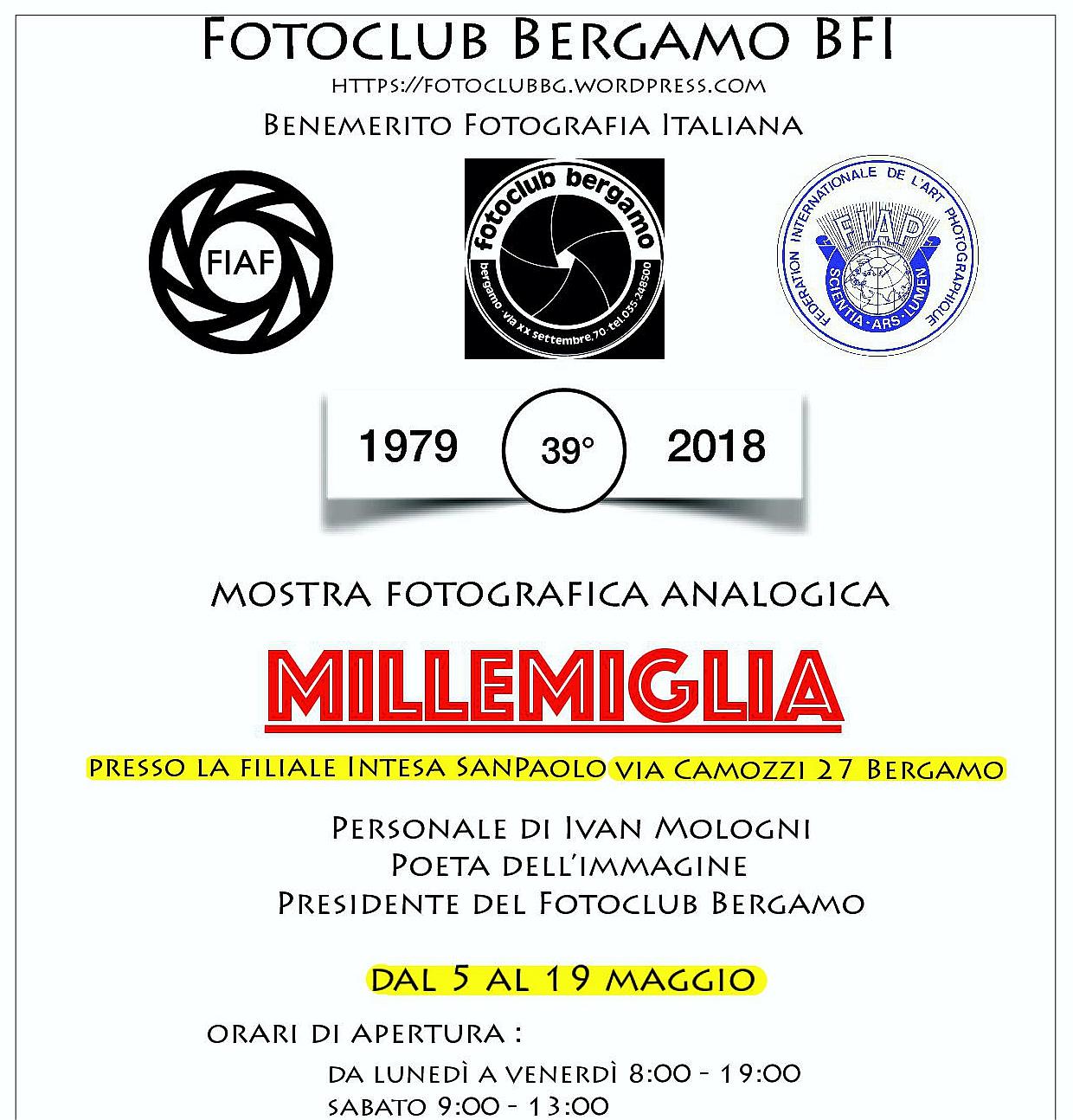 In occasione dell’arrivo a Bergamo dell’edizione 2018 della storica gara, previsto per sabato 19 Maggio p.v., il presidente del Fotoclub Bergamo propone, in una personale ospitata in una sede particolarmente prestigiosa, le immagini più suggestive di passate edizioni sullo sfondo della nostra città. N.B: Questa comunicazione necessita di un aggiornamento in quanto la Direzione dell’Ente Ospitante (Banca Intesa), verificato il grande interesse per l’esposizione riscontrato sia nella cittadinanza che nei frequentatori della Sede, ha deciso di prorogarne il termine al 29 Maggio p.v.