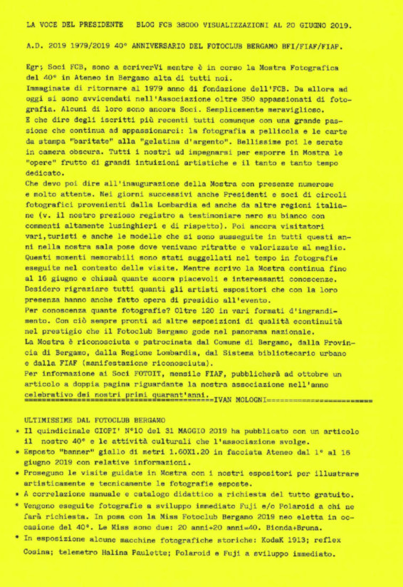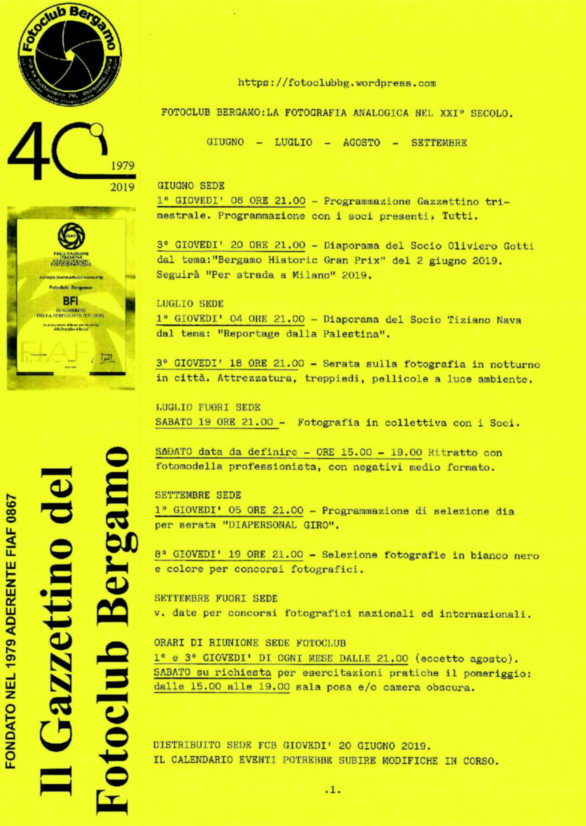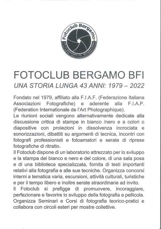 Proseguono incessanti le iniziative del Fotoclub Bergamo che arrivano quest’anno a compiere i quaranta anni!