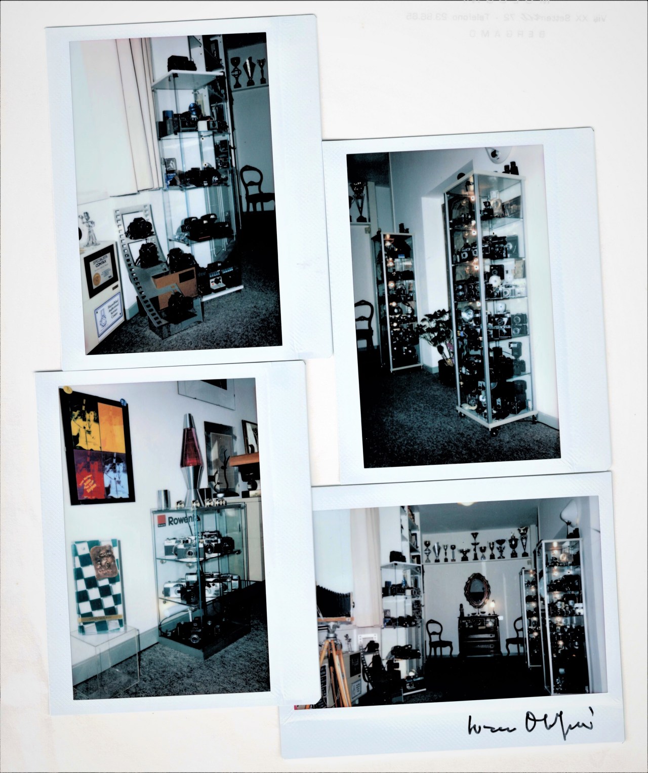 Nel mese di agosto 2021 si è conclusa la realizzazione del museo privato presso il Foto Club Bergamo. Sono orgoglioso di avere riordinato, con nuove vetrine “a parallelepipedo”, l’esposizione delle attrezzature fotografiche in mio possesso. L’ultima vetrina allestita in ordine di tempo è quella delle Polaroid, con una ventina di modelli tra i più significativi a partire dal 1960! A seguire, una vetrina con apparecchiature in formato 24 x 36 ed altro allestimento per quelle in formato 6 x 6 e 6 x 9, oltre a – dulcis in fundo – un apparecchio in legno “campagnolo” nel formato a lastre 18 x 24 del 1890 e perfettamente funzionante.