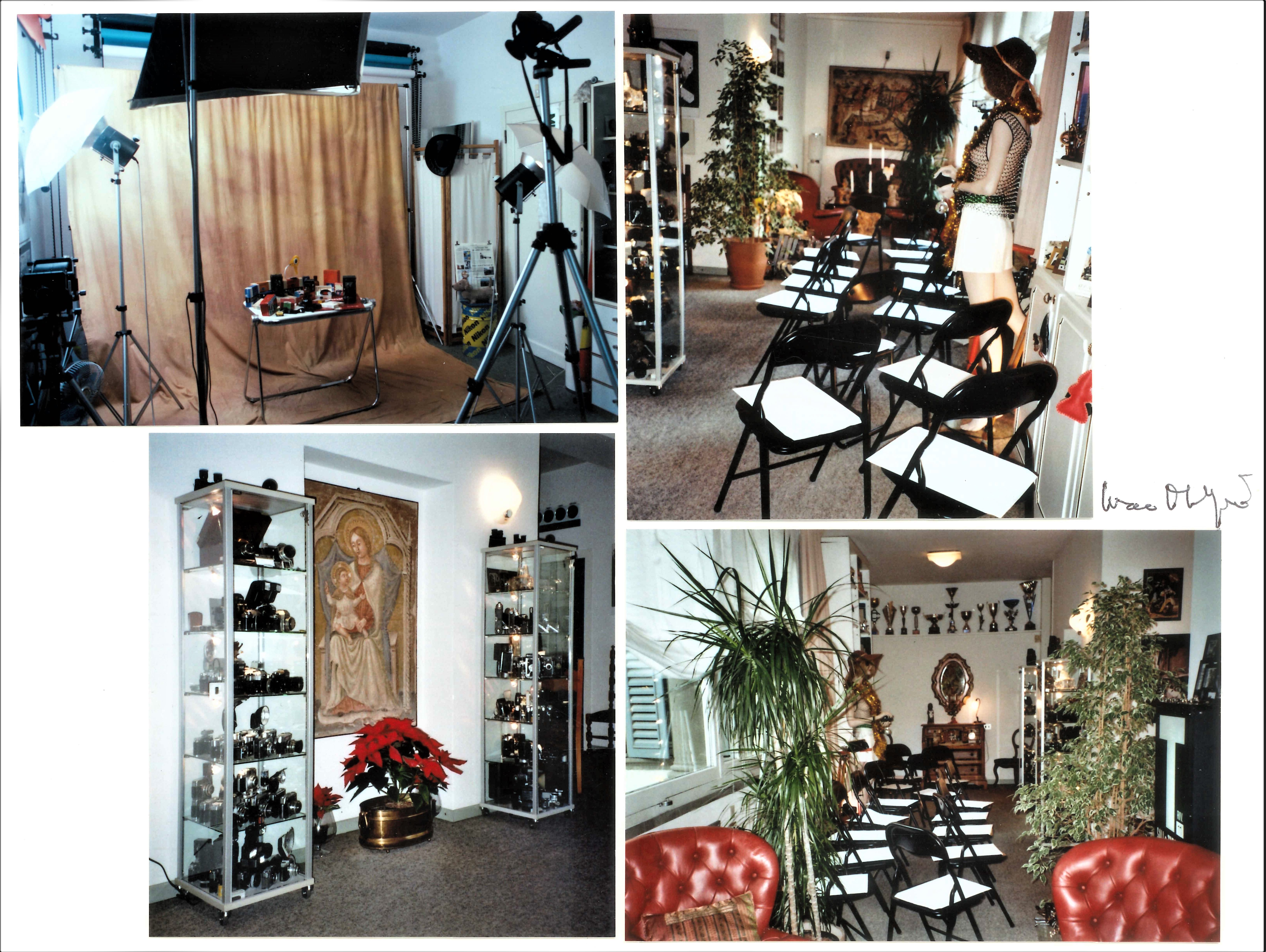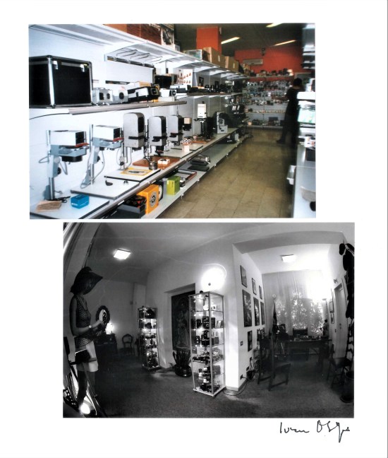 foto 3: le vetrine (qui raffigurate in coppia), con macchine fotografiche di diversi formati;