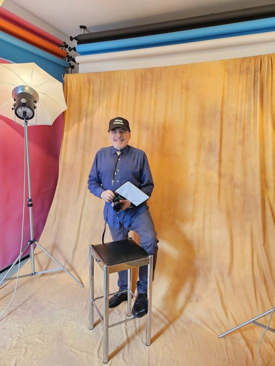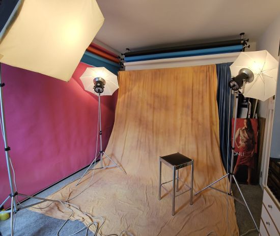 foto 3: ancora la sala pose con diversi fondali colorati ed anche in tessuto;
