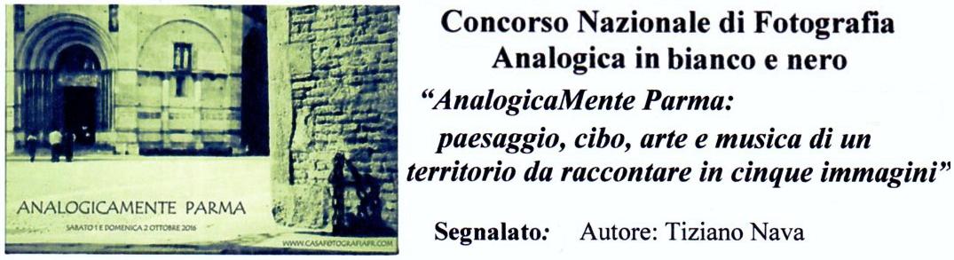 Vivissimi complimenti del Fotoclub al nostro Socio Tiziano Nava che, partecipando al concorso nazionale “AnalogicaMente Parma”, ha tenuto alto il nome del Circolo ben figurando e ottenendo la “Segnalazione” come autore (alcune sue immagini qui di seguito).