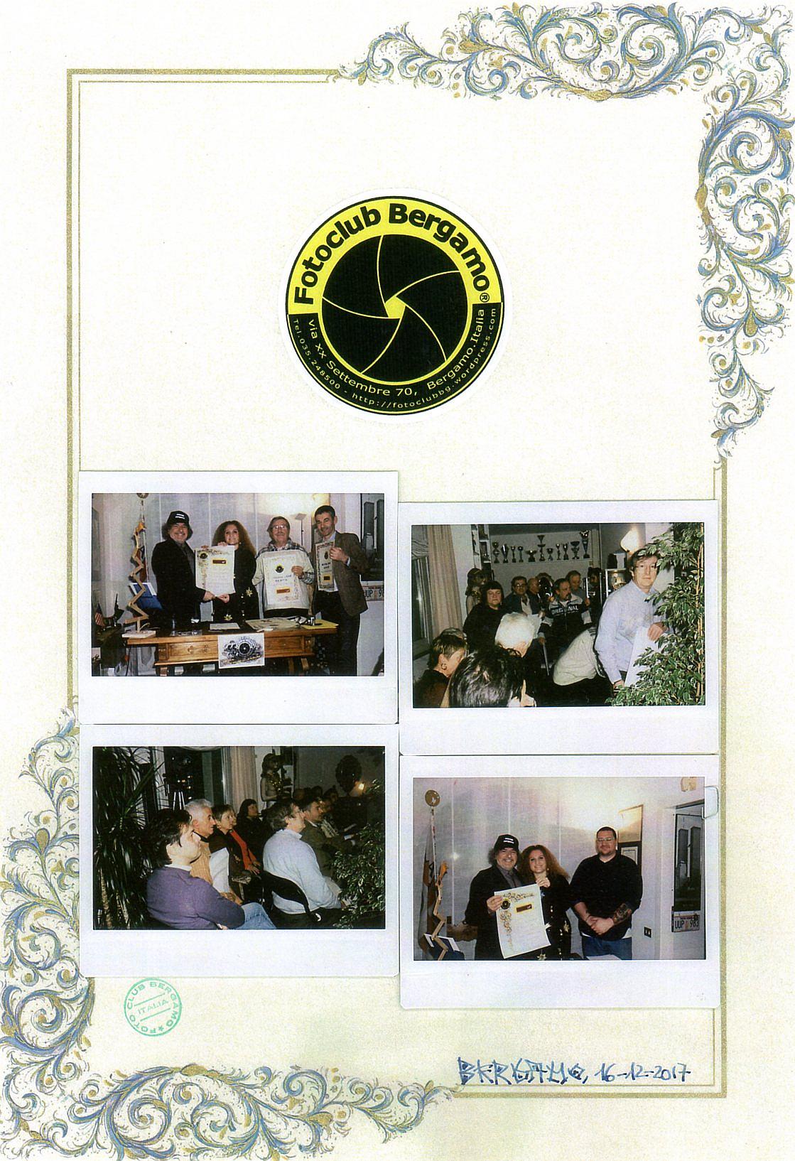 Assieme allo scrivente avevano esposto anche i soci: Silvio Cucchi, Michele Giolito, Riccardo Mottola ed Antonio Pecis (vedi locandina sotto). La mostra è stata patrocinata dal Comune e dalla Provincia di Bergamo ed è riconosciuta F.I.A.F..