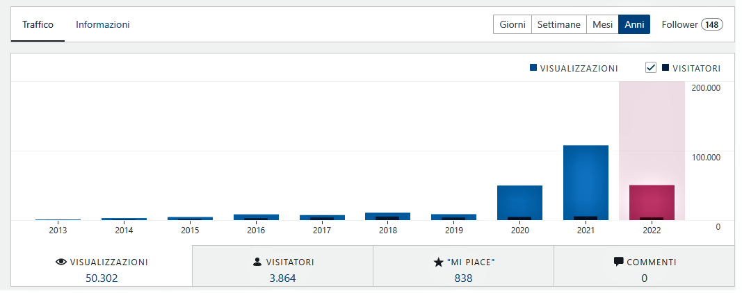 Nel solo 2022 abbiamo superato le 50.000 visualizzazioni con quasi 4.000 visitatori: