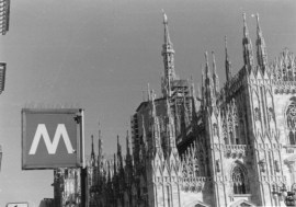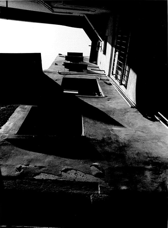 Per quanto mi riguarda ti invio un immagine eseguita dall’alto, sfruttando la diagonale nella pavimentazione per avere più dinamicità ed equilibrio compositivo nella regola dei terzi. La pellicola usata è una Kodak TMax, sviluppata con omonimo rilevatore. E poi un grafismo lineare della mia mano. Arch. Ivan Mologni”
