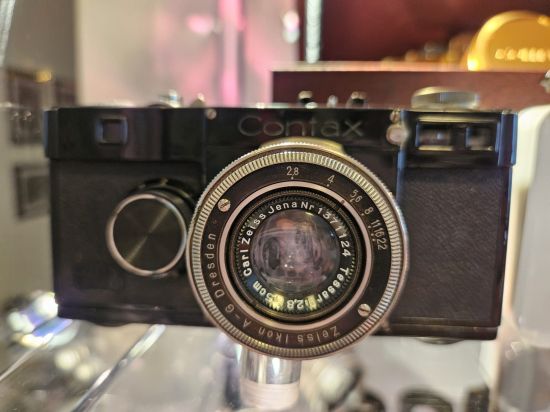 Contax RTS celebrativa oro 501a Contax del 1932Leica 1 Mod. A del 1925Dagherrotipi del 1850Il più piccolo album fotografico del mondo di fine ‘800 (24 mm x 16 mm)Hasselblad 500 C/M celebrativa in cristallo svedese 1980 & Hasselblad super SWC/M 1982Stereoscopio ligneo con maniglia impugnatura 1900 caPolaroid 95A land camera 1955Fotofucile ZENIT- ES del 1965Macchina fotografica in legno fine XIX Secolo