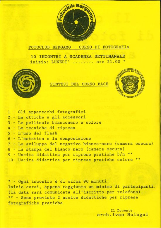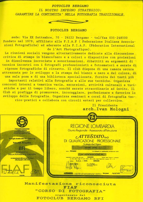 dal 15/01/1979 “corso di fotografia” riconosciuto FIAF