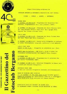 La pandemia colpisce anche le nostre passioni e, per noi del Fotoclub Bergamo, la fotografia. Ho sentito in questo periodo molti associati. L’impegno per tutti noi è cercare ancora degli interessi che possano allentare questa pressione interiore. Per noi è quindi indispensabile proseguire nella fotografia e continuare a scattare. Però non si può uscire, bisogna rispettare il decreto governativo. Un suggerimento è fotografare in casa, per esempio dalle vostre finestre, oppure dedicarsi a composizioni di natura e/o oggettistica, macro e/o micro fotografia, fiori, frutta e/o elaborazioni in camera obscura, con il cuore, la testa, la mente in composizioni di respiro artistico.