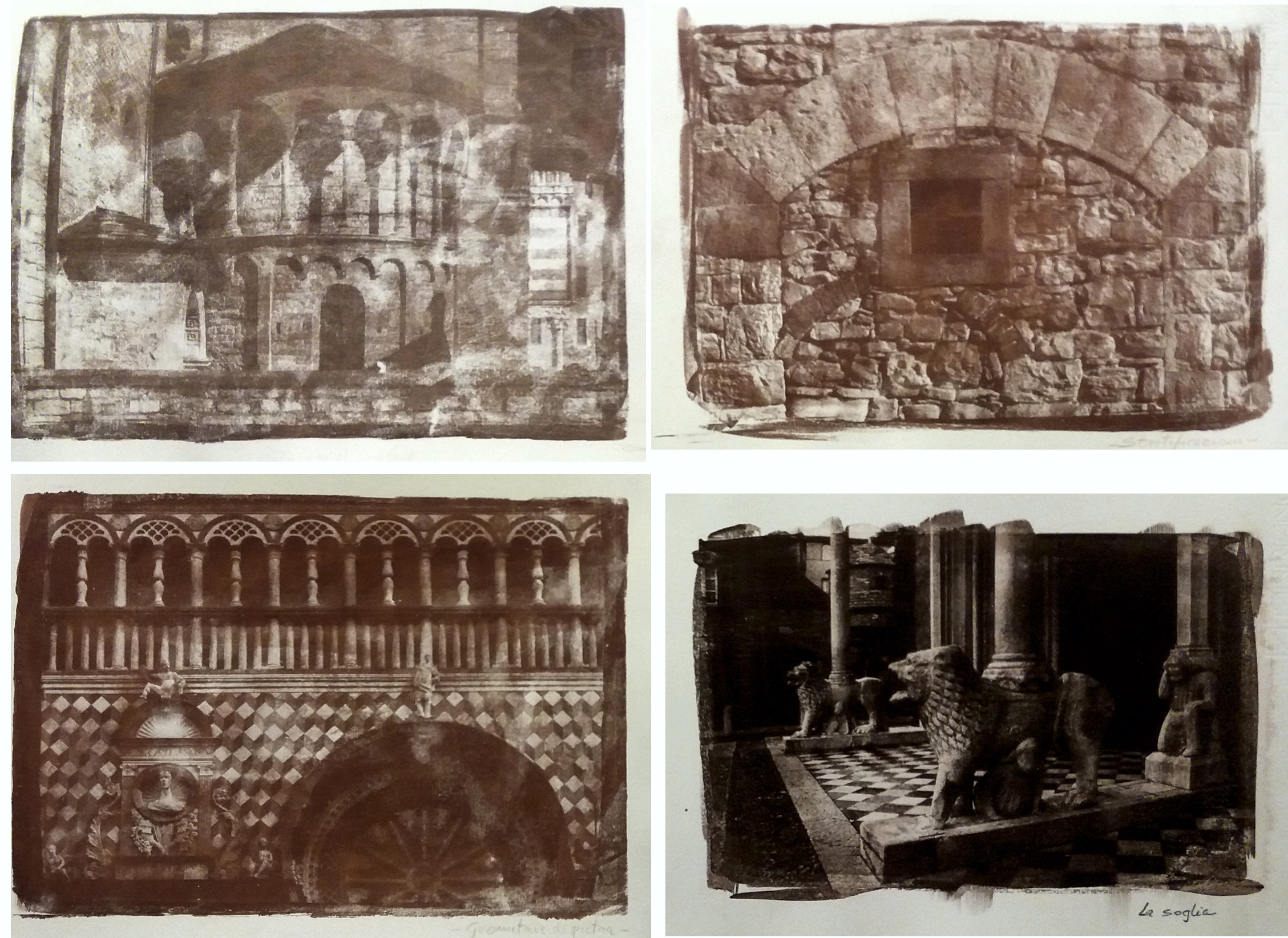 Le parti che prendono più luce, in corrispondenza delle trasparenze del negativo, si induriscono e diventano insolubili; mentre le parti che si trovano sotto le zone più dense del negativo rimarranno solubili in acqua, dove avverrà lo sviluppo vero e proprio dell’immagine. Sensibilizzando il foglio è possibile includere pigmenti di varia natura e colore, dare così maggiore o minore intensità cromatica, e, in seguito, intervenendo nella fase di sviluppo, si potranno schiarire le alte luci. Questo tipo di processo è la radicale negazione della “standardizzazione”: ogni immagine, realizzata rigorosamente a mano, è un unicum mai perfettamente riproducibile. L’immagine si arricchisce in modo graduale in dettaglio e profondità mediante la progressiva aggiunta di strati di pigmento che si ancorano alla carta grazie all’azione della gomma e del materiale sensibile. A ogni nuovo strato, l’immagine prende una diversa forma, spessore, tonalità mentre l’azione dell’acqua, che può essere variata per temperatura e movimento, eliminerà l’eccesso di materia rivelando, in modo singolare, le luci più intense. Anche il Socio Aldo Mapelli, autore delle immagini riportate, espone alla Mostra “Le Mura e Bergamo Alta” – Sala Manzù 18/30 Maggio 2018.