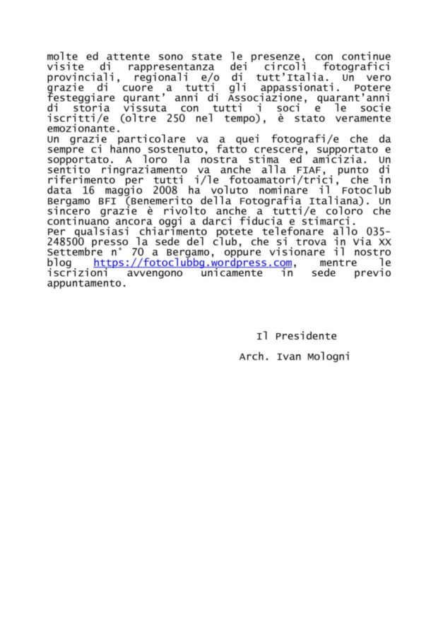 Proseguono incessanti le iniziative del Fotoclub Bergamo che arrivano quest’anno a compiere i quaranta anni!
