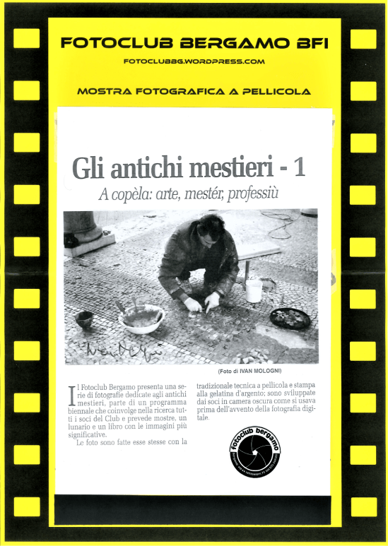 Bellissima manifestazione che comprendeva anche spettacoli di burattini e incontri con le scuole. Non poteva certo mancare chi, come il nostro Fotoclub, è amante della nostra storia e delle nostri radici. Erano esposte famose collezioni come quella delle famiglie Milesi di S.Pellegrino e Losa di Cisano B., risalenti alla fine dell’800, quella del fabbro Pietro Scuri di Città Alta, il Gioppino della collezione Lucchetti, ecc.