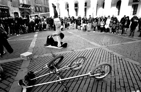 Un tema a me molto caro è quello degli “Artisti di Strada“. Per chi è interessato al ritratto, è un esercizio fotografico molto impegnativo riuscire a cogliere le loro espressioni e movenze. Gli spettacoli di piazza sono immediati, imprevedibili e bisogna essere sempre molto attenti e pronti a documentare quanto accade attorno a noi.