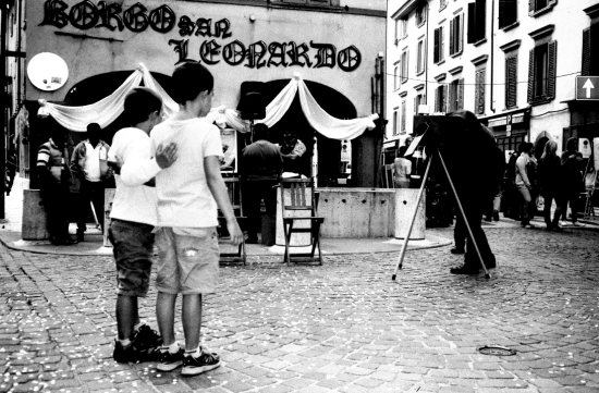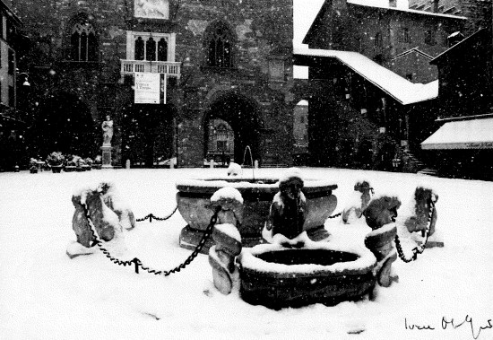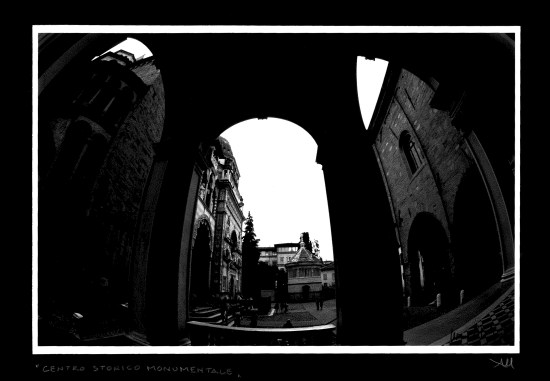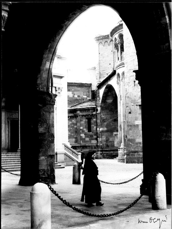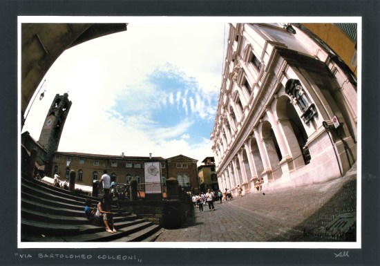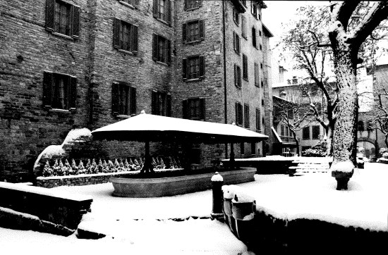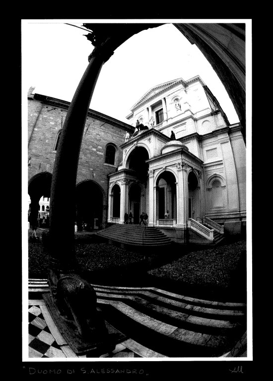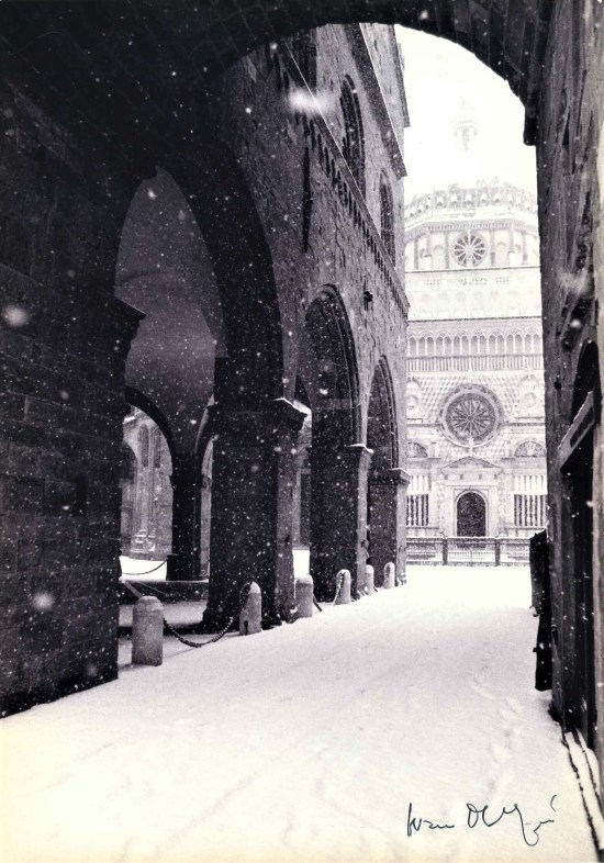 Fotografare città storiche come Bergamo è sempre una piacevole sfida per interpretare al meglio tante meraviglie storico – artistiche. E’ importante fotografare in qualsiasi condizione metereologica: sole, pioggia, neve, inverno ed estate. Questo è il segreto. Le riprese devono sempre coinvolgerci e la composizione deve essere sempre meditata e ponderata, secondo il motto “prima pensa… poi scatta“. Poi curare in modo esatto e preciso i tempi, diaframmi e messa a fuoco. Successivamente si penserà allo sviluppo più appropriato, per avere negativi “perfetti”.