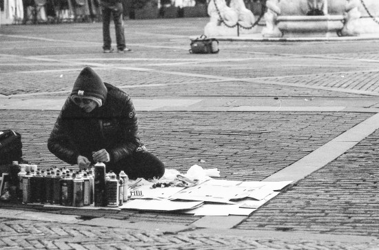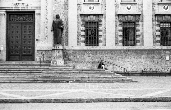 Fotografie, chilometri di strade e piazze, a tema libero. Questi scatti esprimono la libertà di interpretazione. Quando esco, durante i miei corsi di fotografia, desidero che i partecipanti si soffermino ad osservare attentamente quanto accade attorno a loro. Io lo chiamo “teatro di strada“.