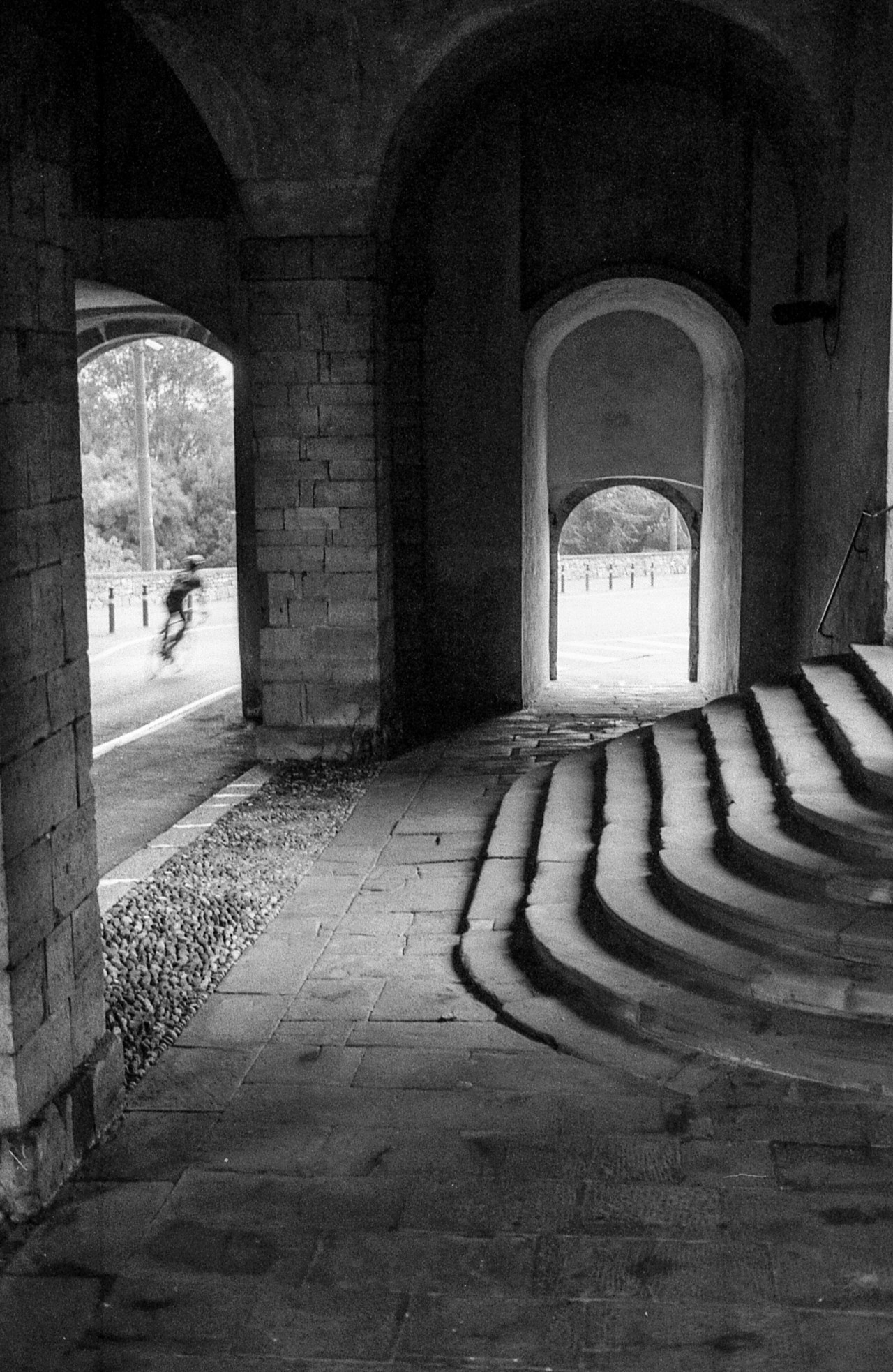 Per entrambe le escursioni ho scelto un giusto compromesso tra qualità e portabilità: Pentax MX dotata unicamente dell’obiettivo Pentax M 135 mm, focale per me sempre molto stimolante (vgs articoli Street Photography con il 135mm? Si può!; In giro per Città Alta – Bergamo con il 135mm). La pellicola è una Kodak Gold 200mm negativa a colori, sviluppata in C-41.