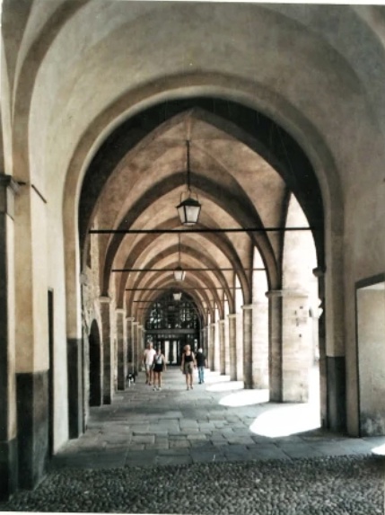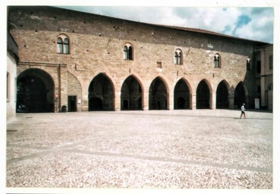 Foto 1: una panoramica della piazza CittadellaFoto 2: uno scorcio della piazza Cittadella con la torre della CampanellaFoto 3: i porticati viscontei in tutta la loro imponenza architettonica