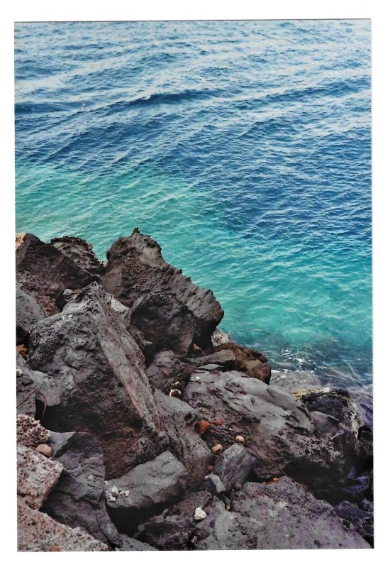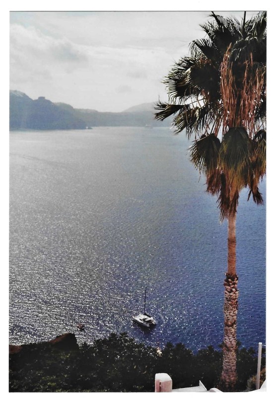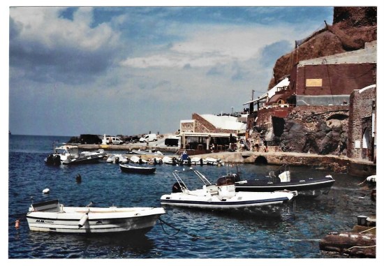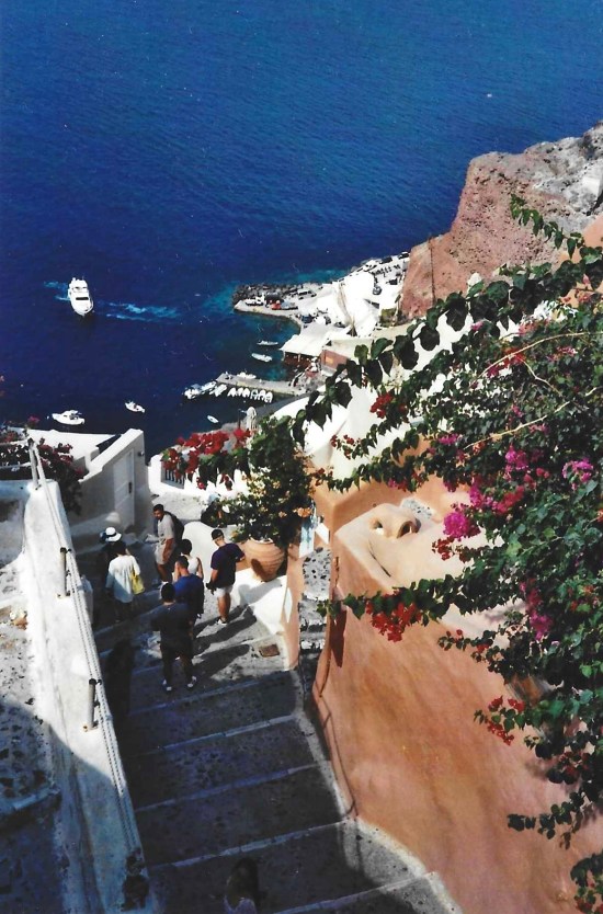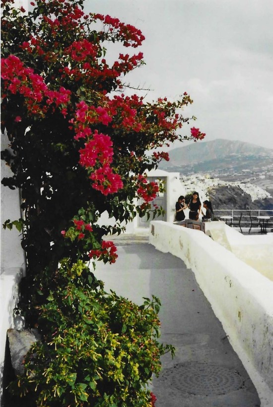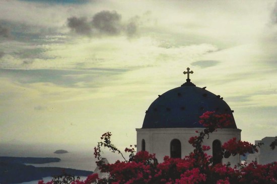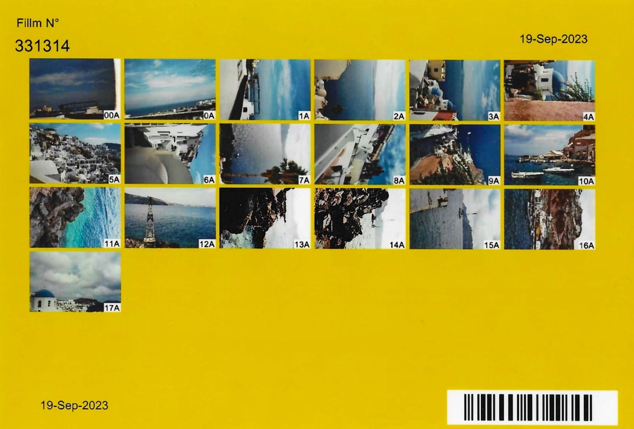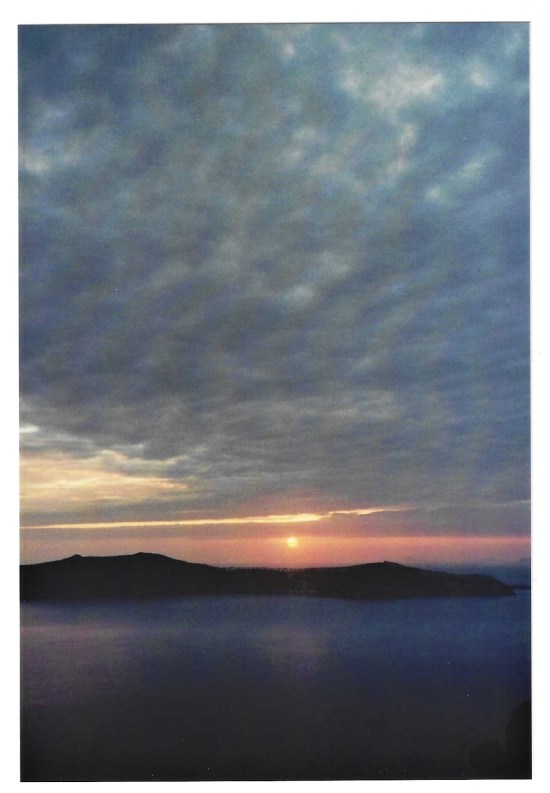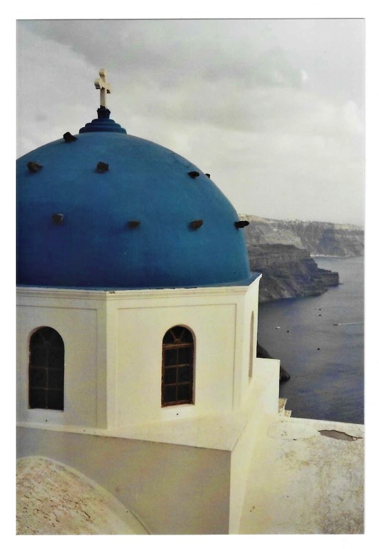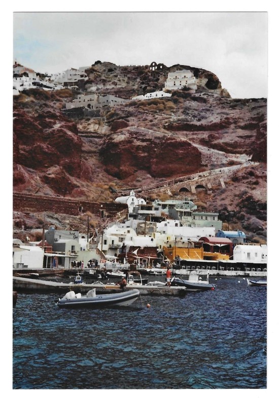 Le case bianche con i tetti blu arroccate in cima alle scogliere che si affacciano su un cratere sottomarino, le spiagge vulcaniche rosse e nere, l’azzurro del mare e del cielo di fine estate: questa volta sarebbe stato un suicidio portarsi rullini in bianco e nero!