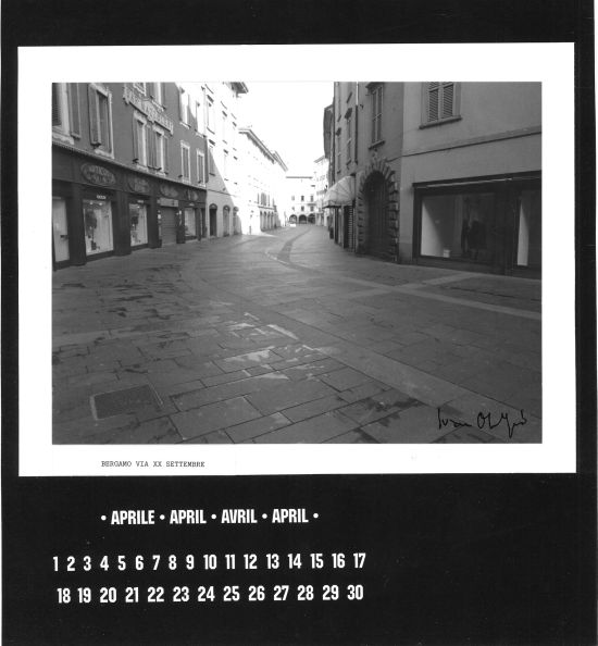 La Mostra è attiva con una installazione fotografica e il Calendario 2020 del centro di Bergamo “deserto”. Gli scatti sono tutti inbianco e nero per scelta, per emozione, per dolore e per il rispetto della dignità dei tanti concittadini deceduti in quel nefasto periodo.
