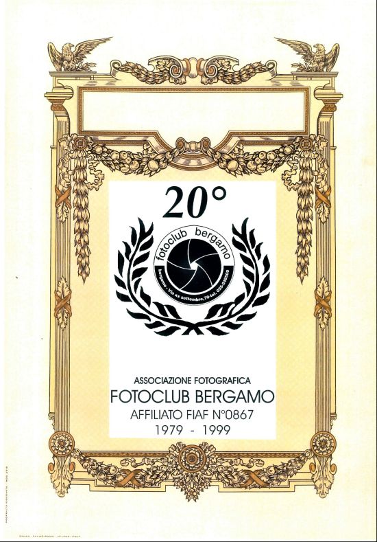 Nella carrellata di seguito proponiamo il nostro Logo, quello della F.I.A.F. – Federazione Italiana Associazioni Fotografiche, seguita dalla medaglia commemorativa del 75° Anniversario della Federazione, già perentoriamente acquisita dal Fotoclub Bergamo ed in esposizione presso la sede ed il gagliardetto FIAF del 1948.