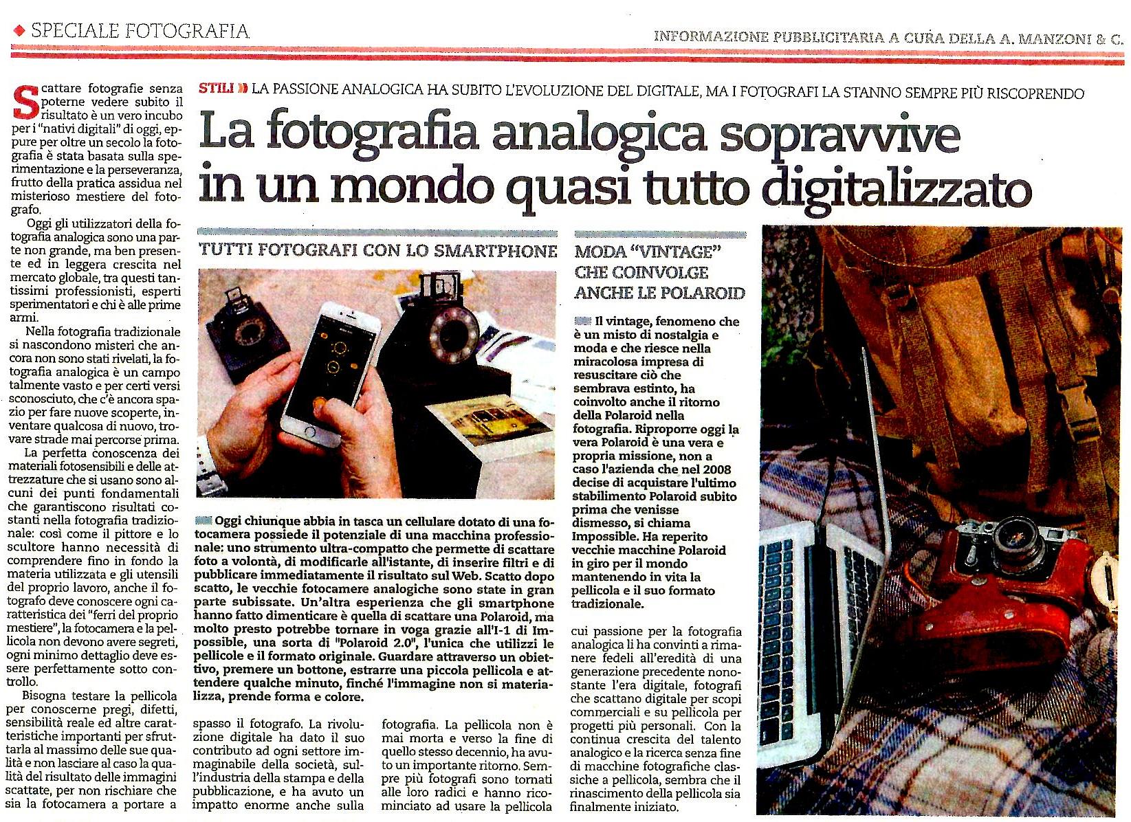 Lentamente, ma sempre più frequentemente, anche la stampa non specializzata prende nota e riporta con vari titoli nei propri articoli l’esistenza di quella insostituibile realtà che è la nostra, cara fotografia analogica.