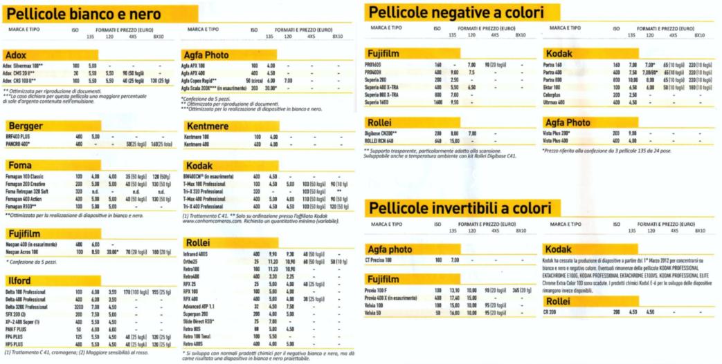 Lo hanno ben capito le ditte produttrici di pellicole che continuano a produrne vari e sempre nuovi tipi. Per tutti gli appassionati, estratto dall’almanacco di Fotografare – Estate 2017, riportiamo perciò di seguito tutti i tipi di pellicola disponibili in commercio e che si possono acquistare nei migliori negozi di articoli fotografici.