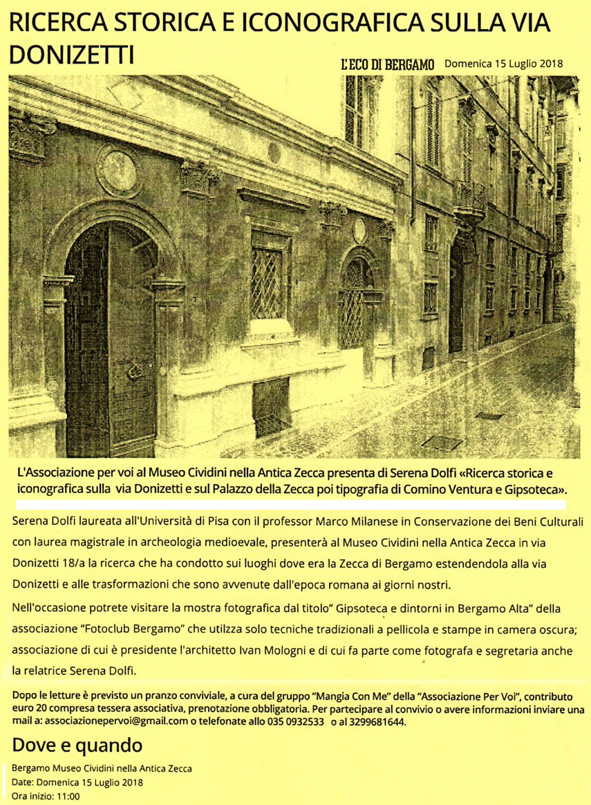 Mentre la mostra del Fotoclub procede con soddisfazione degli organizzatori per il grande numero di complimenti ricevuti dai numerosi visitatori, in appendice, si è tenuta una conferenza, tenuta della nostra associata Serena Dolfi, sulla storia della via Donizetti facente parte della storica vicinia di S.Cassiano.
