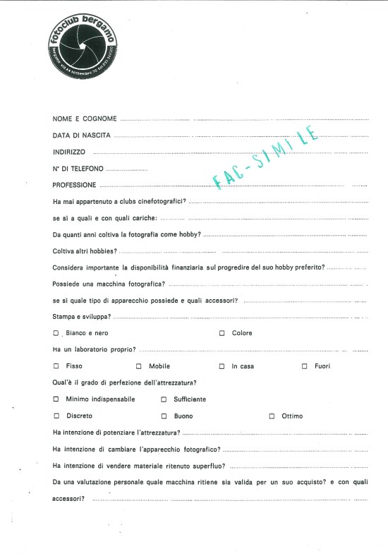 Voglio infine ricordare che, già a partire dal 40° anno di fondazione, il Fotoclub Bergamo persegue questo nobile fine: “Associazione per la Salvaguardia e la Diffusione della Fotografia a Pellicola”.