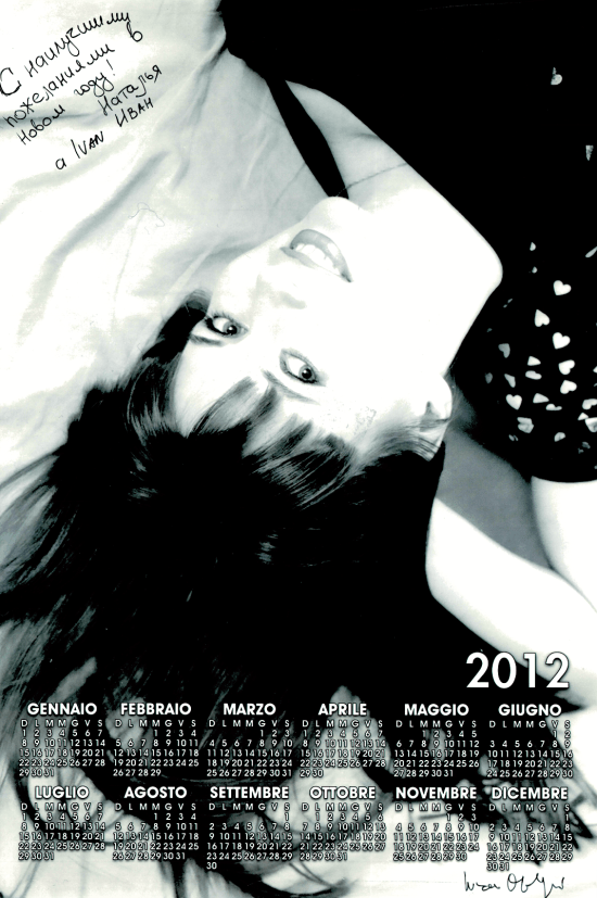 A seguire una selezione di miei calendari, del 2012, con dedica delle modelle ritratte: Nataly, Samira, Natalya, Alice (B/N) e Alice (colore). Infine un mio autoritratto con la Contax 2 in bianco e nero.