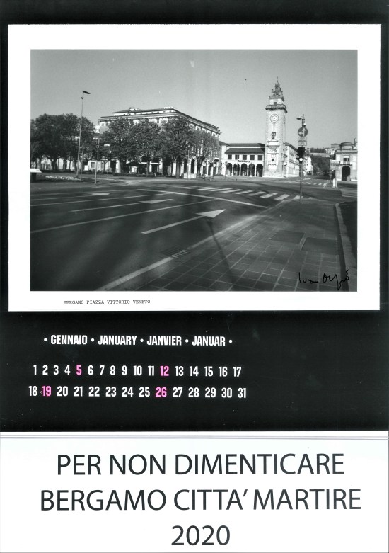I celebrativi esposti al FCB l’11 dicembre 2021 in occasione della presentazione del Calendario 2022 – “Per non dimenticare – Bergamo città martire 2020”