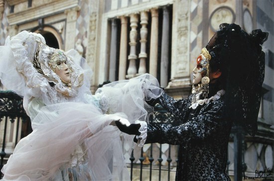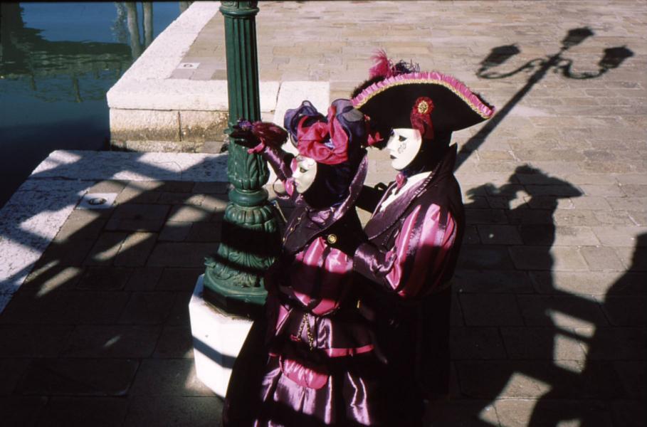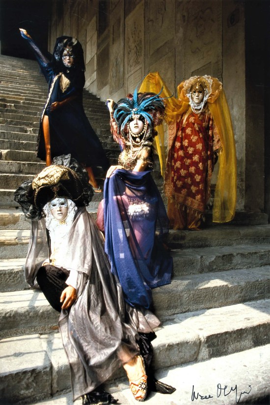 2. Maschere “Serenissime” in notturno a luce ambiente, con treppiede Triminor Manfrotto e testa a sfera con obiettivo 50mm f/1.4 Planar Carl Zeiss;