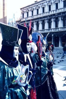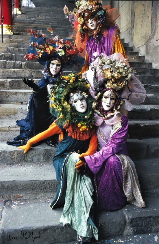 • foto 6: trittico di maschere in posa nella scalinata Palazzo della Ragione – focale 180mm f/2.8;