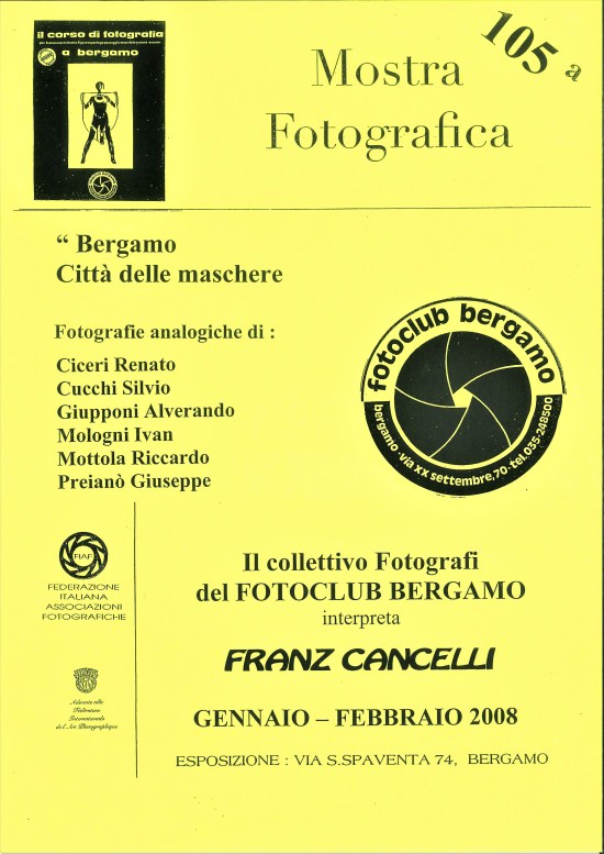 In ordine temporale: “Carnevale con gli Astrolabio” – collettivo FCB presentata domenica 28 marzo 1999 nella manifestazione “Una piazza per gli Artisti”, presso i Portici di Piazza Pontida in Bergamo bassa; poi “Bergamo città delle Maschere” – dove il collettivo FCB interpreta Franz Cancelli (mascherero bergamasco) – con esposizione in via Silvio Spaventa 74, Bergamo – gennaio/febbraio 2008; infine “Tèp de Carneàl” del febbraio 2016, ospitata presso l’Osteria dei Tre Gobbi, via Broseta 20, Bergamo – mostra personale di Ivan Mologni e Serena Dolfi.