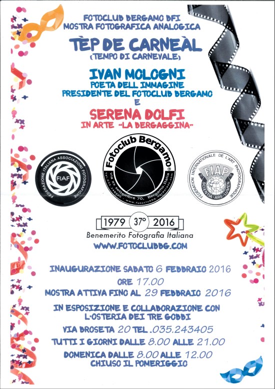 Presento ben 3 importanti Mostre fotografiche, sia personali che collettive dei soci del Foto Club Bergamo BFI.