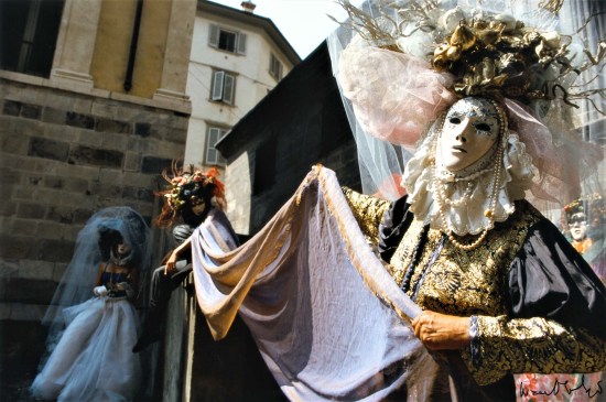 1. Maschere “Serenissime” – nata da un’idea del mascherero bergamasco Franz Cancelli. Le ho volute ambientare nel lavatoio di Città Alta (ora restaurato), in una posa rappresentativa, quasi di attesa, con movenze comunque aggraziate (obiettivo 85mm f/1.4 Sonnar Carl Zeiss);