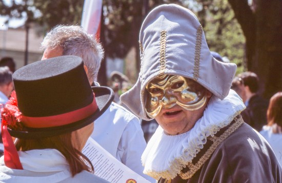 Con gli allievi ed allieve mi trovo periodicamente ad affrontare un tema scontato a febbraio: il carnevale. Nell’occasione, per rendere meno banale il reportage, abbiamo utilizzato una pellicola in bianco e nero: attraverso le sfumature di grigio, pensare e vedere a colori. Inizialmente il gruppo di corsisti era perplesso, ma io sono rimasto irremovibile. La pellicola usata è la sempre affidabile Kodak TMax da 400 iso, successivamente sviluppata in una tank Patterson da 5 spirali.