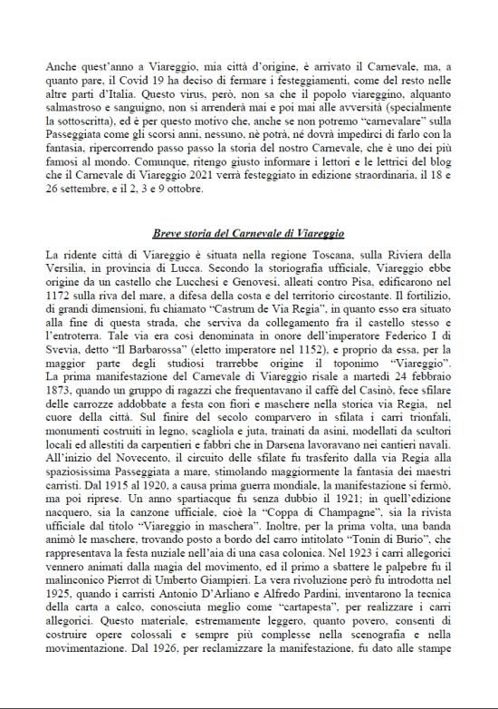 Di seguito riporto una selezione di immagini “carnacialesche” che definirei coinvolgenti ed intriganti (purtroppo quest’anno il Carnevale è sospeso ed ogni evento soppresso a causa del covid 19…. alla prossima!).