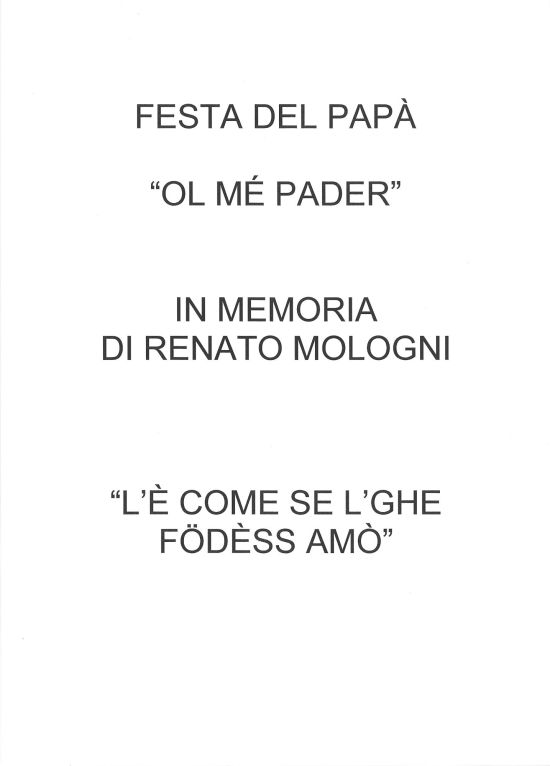 A memoria di Renato Mologni, mio papà.