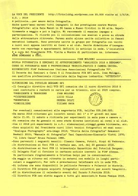 In appendice al nostro Gazzettino informativo trimestrale, vogliamo ricordare ai nostri associati che è stato eletto, alla gradita presenza di responsabili della Fiaf, il nuovo direttivo del Club, che resterà in carica per il prossimo triennio; riconfermato l’incarico di Presidente all’infaticabile Arch. Ivano Mologni, con la vice-presidenza di Licio Villa e con il Consigliere Tiziano Nava, per la prima volta nella storia del Circolo, la carica di Segretario è risultata affidata al gentil sesso nella persona di Serena Dolfi, cui auguriamo un proficuo impegno.