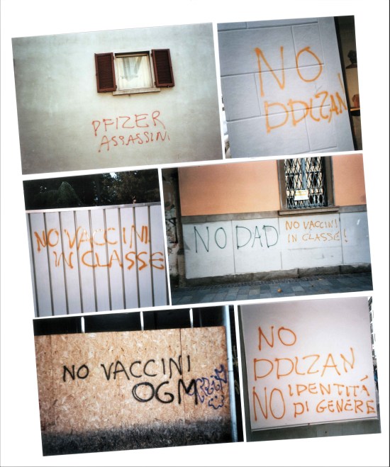 Continua il reportage sulle scritte apparse in questi giorni a Bergamo bassa (v. anche articolo sul tema: Dai muri di Bergamo bassa sul vaccino (di tutto e di più…)). Sempre accompagnato dall’immancabile Contax TVS 28/56mm Carl Zeiss. Un consiglio al riguardo: portate sempre con voi una macchina fotografica, per documentare in tempo reale ciò che accade!