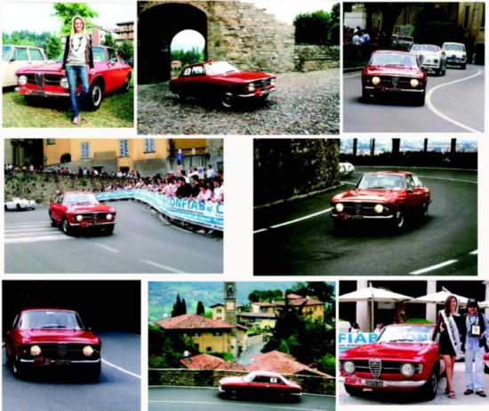 Per fare ciò, riprendiamo dagli archivi le belle immagini di un suo modello che resta nel cuore di tutti gli appassionati di auto storiche (Alfa Romeo Giulia 1.3 Junior del 1965 – “designer” Bertone in rosso corsa tipico delle A.R.) impegnato sul “Circuito delle Mura” (foto di Alessia con Canon F1, Luigi con Nikon F3, Ursula con Olympus OM2, Renato con Leica 6.2), augurandole lunga vita!!